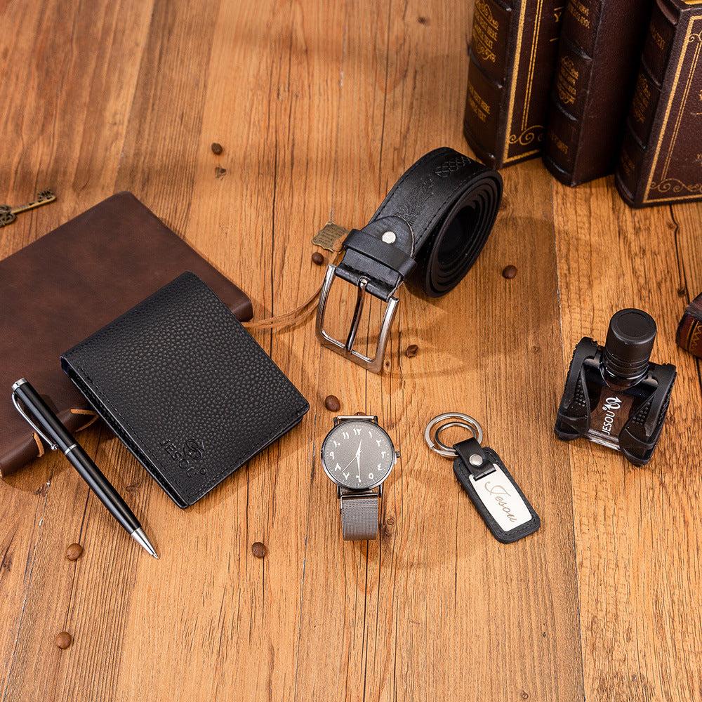 Boutique Gift set Belt Wallet Perfume Keychain Large Dial Quartz Watch Pen